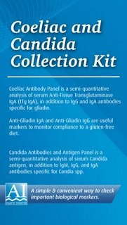 Please note: The kit price does not include the blood laboratory analysis for the results of your sample. You need to choose if you want the Coeliac test or Candida test or both tests. The lab analysis costs $120.00 per test. We send you the testing kit which you use to take the required sample and then send in our prepaid packaging to the laboratory. Test results are returned to our referring naturopathic practitioners who will then send to you within 10 working days.
